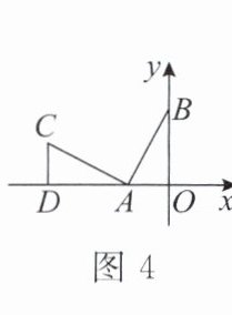 4. 如图 4,在平面直角坐标系中,点$A$,$B的坐标分别是(-3,0)$,$(0,6)$,若$\triangle AOB \cong \triangle CDA$,则点$D$的坐标是(