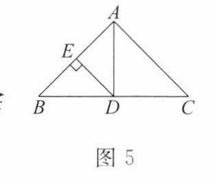 7. 如图 5,在$\triangle ABC$中,$AD$是角平分线,$DE \perp AB于点E$。若$\triangle ABC$的面积为 18,$AB = 6$,$DE = 3$,则$AC$的长是(
