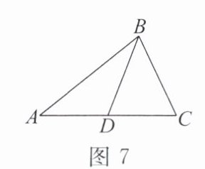 9. 如图 7,$\triangle ABC$中,$AB = 7$,$BC = 5$,$BD是AC$边上的中线。若$BD = x$,则$x$的取值范围是( )。