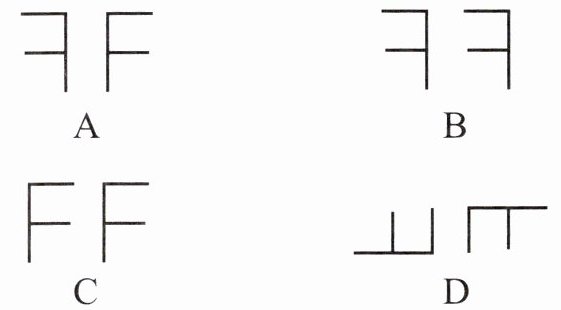 2. 在下列各选项中,右边图形与左边图形成轴对称的是(
