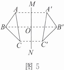 3. 如图 5,若△ABC 与△A'B'C'关于直线 MN 对称,BB'交 MN 于点 O.下列说法不一定正确的是(