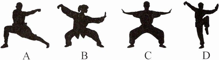 1. [2025 湖南中考·传统文化]武术是我国传统的体育项目.下列武术动作图形中,属于轴对称图形的是(