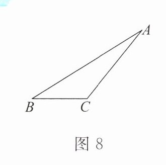 例 2 如图 8,$\triangle ABC$ 为钝角三角形,利用直尺与圆规作边 $BC$ 上的高。(不写作法,保留作图痕迹)