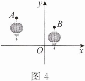 1. [2023 浙江金华中考]如图 4,两个灯笼的位置$A$,$B的坐标分别是(-3,3)$,$(1,2)$,将点$B$向右平移 2 个单位,再向上平移 1 个单位得到点$B'$,则关于点$A$,$B'$的位置描述正确是(