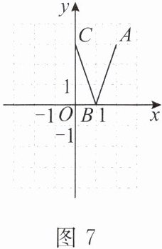 5. 如图 7,在平面直角坐标系中,形如英文字母“V”的图形的三个端点的坐标分别是$A(2,3)$,$B(1,0)$,$C(0,3)$.