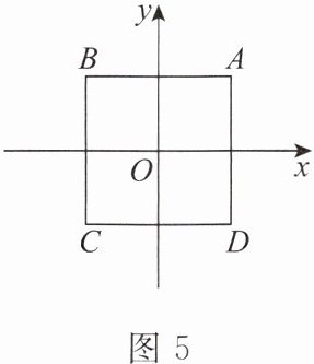 3. [教材第 76 页习题 15.2 第 3 题变式]如图 5,正方形$ABCD关于x$轴、$y$轴均成轴对称,已知这个正方形的面积为 16,请分别写出点$A$,$B$,$C$,$D$的坐标.