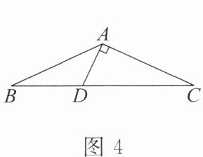 1. [2024甘肃兰州中考]如图4,在△ABC中,AB= AC,∠BAC= 130°,DA⊥AC,则∠ADB的度数为(