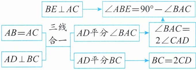 AB= AC→AD平分∠BAC→∠BAC= 2∠CAD