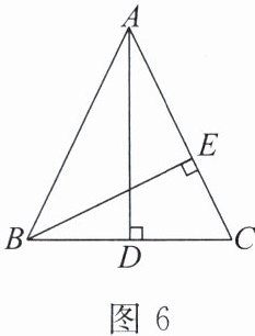 例2 如图6,在△ABC中,AB= AC,AD⊥BC于点D,BE⊥AC于点E。