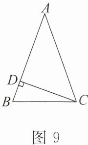3. 如图9,在△ABC中,AB= AC,CD⊥AB于点D.若∠A= 36°,则∠DCB等于(