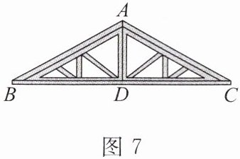 3. [2025江苏扬州中考]在如图7的房屋人字梁架中,AB= AC,点D在BC上,下列条件不能说明AD⊥BC的是(