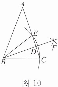 4. 如图10,在△ABC中,AB= AC,以点B为圆心,BC的长为半径作弧交AC于点C,E,再分别以点C和点E为圆心,大于$\frac{1}{2}CE$的长为半径作弧,两弧交于点F,连接BF交AC于点D。若∠A= 42°,则∠EBD= ____°。