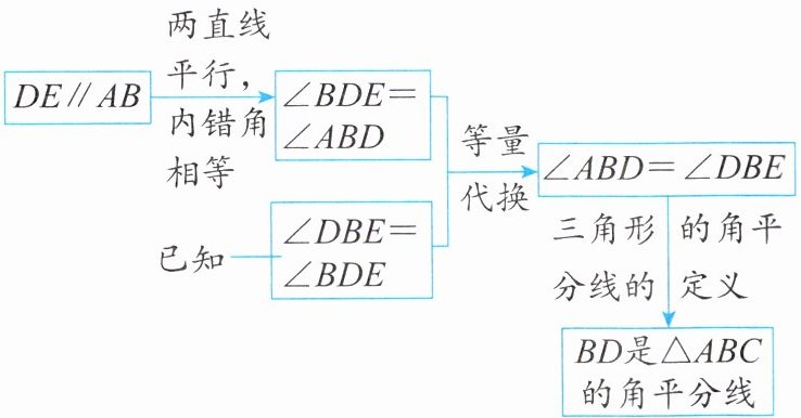 如图 4,D 是△ABC 的边 AC 上一点,过点 D 作 DE//AB 交 BC 于点 E.若∠DBE = ∠BDE,则请说明 BD 是△ABC 的角平分线.