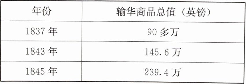 | 年份 | 输华商品总值(英镑) |