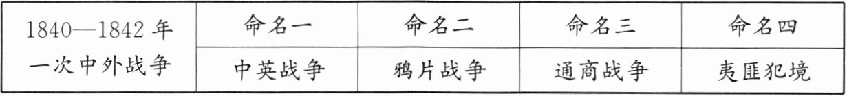 | 1840—1842年一次中外战争 | 命名一 | 命名二 | 命名三 | 命名四 |