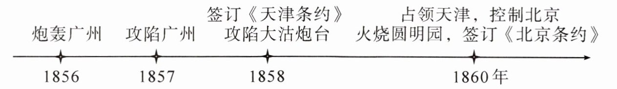 ①修约 ②亚罗号 ③俄 ④北京 ⑤九龙 ⑥天津 ⑦长江 ⑧半殖民地 ⑨长江 ⑩150
