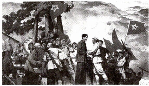 6. 下图是一幅再现1928年井冈山会师情景的绘画作品。图中握手的两位领导人是( )