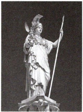 智慧及战争女神雅典娜,是宙斯与墨提斯的女儿。宙斯的儿子阿瑞斯象征战争残酷冲动的一面,作为他的对立面,雅典娜代表着军事策略,象征着计谋和智慧。她勇敢、强大而又善良、仁慈。她出生时宙斯头部剧烈疼痛,之后赫菲斯托斯将宙斯的头部用大斧劈开后,雅典娜手持长枪,身披战甲从中跳出,并从母亲墨提斯处继承了高度的智慧和实践技能,因此雅典娜也是艺术和手工业的保护神。橄榄枝是她的代表,在与波塞冬争夺雅典守护神时,就是因为她抛出橄榄枝,打败波塞冬,成为雅典守护神。