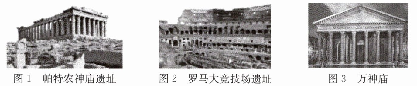 说明:罗马建筑继承了希腊建筑艺术;继承了古希腊柱式的支撑结构和三角楣饰;罗马人把罗马式的拱门和希腊的柱式建筑相结合,将建筑的力度与外观的美感融为一体,如万神庙集希腊柱式与罗马圆顶式建筑风格于一体。