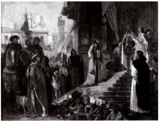2. 右图是画家德拉克洛瓦创作的一幅描绘西班牙王室授封某一航海家为将军的场景的油画。图中被授封的航海家最可能是( )