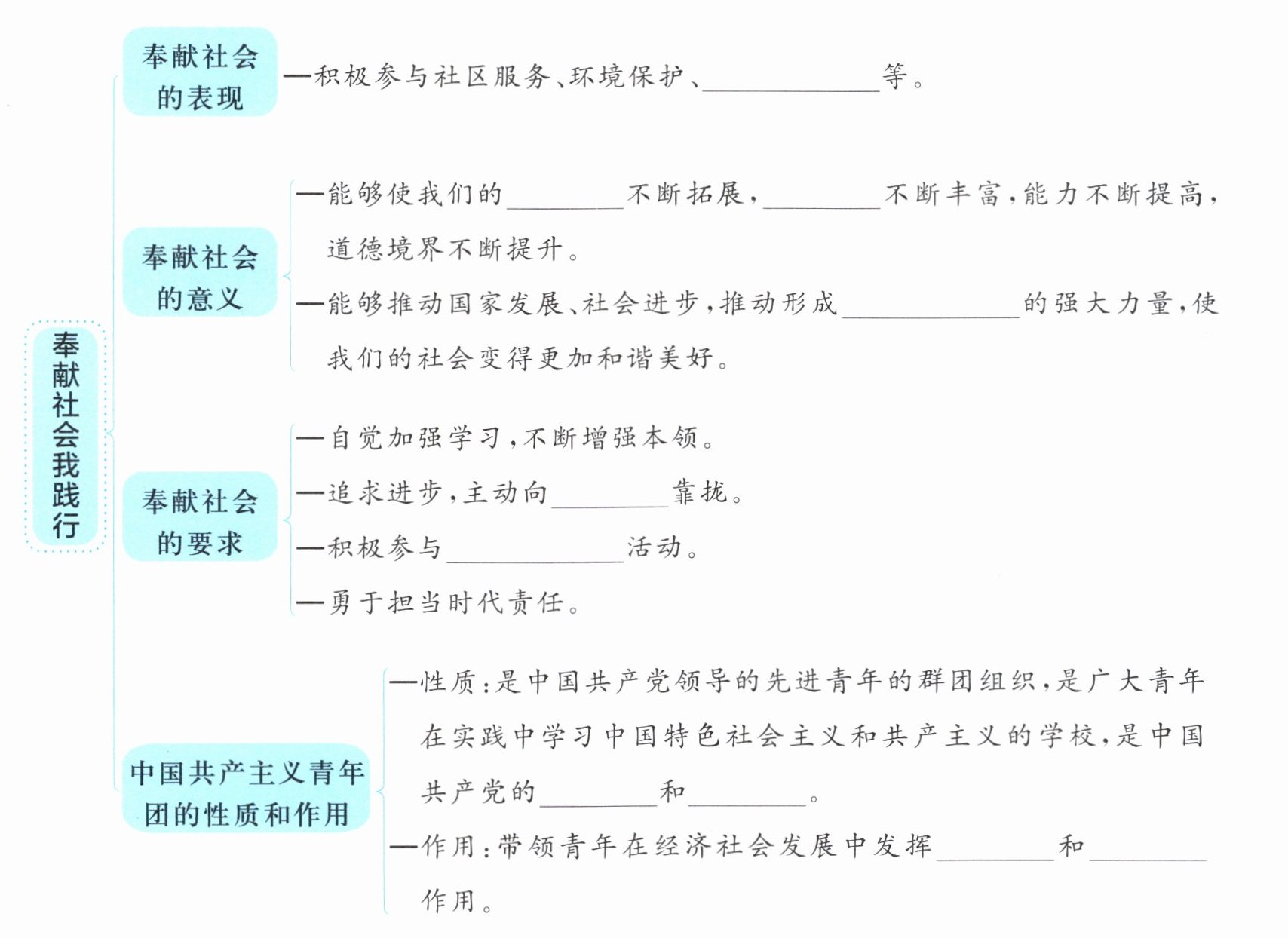 |奉献社会的要求|—自觉加强学习,不断增强本领。—追求进步,主动向______靠拢。—积极参与______活动。—勇于担当时代责任。|