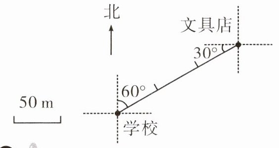 (2)学校在文具店的( )偏( )( )°方向( )m 处。