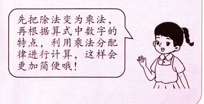 先把除法变为乘法,再根据算式中数字的特点,利用乘法分配律进行计算,这样会更加简便哦!