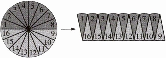 2. 一个圆的周长是37.68cm,把它剪拼成一个近似的长方形(如图),这个长方形的面积是多少平方厘米?