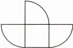 4. 在美术课上,同学们用几何图案设计美丽的图形。小红设计了一艘小船(如图),中间是边长 2 cm 的正方形,在正方形的三条边上各画了一个圆心角为 $ 90^{\circ} $ 的扇形,小船的面积有多大?