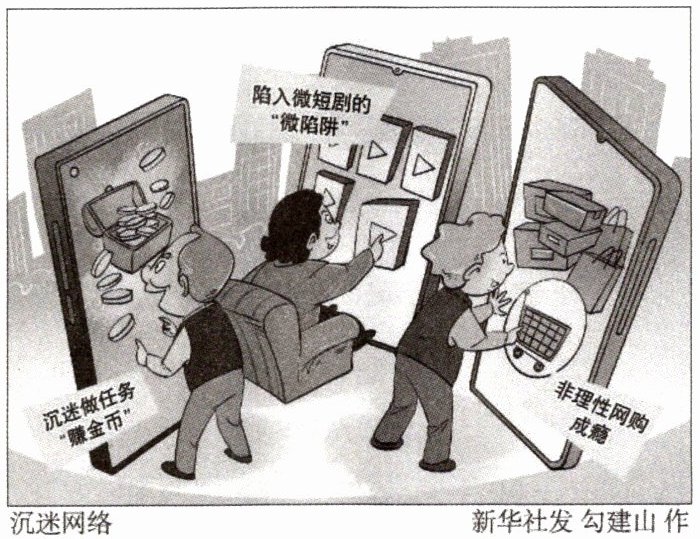 12. 下边漫画展现了“银发低头族”现象。当代很多老年人“触网”后深陷其中,有的甚至“茶饭不思”,成为“银发低头族”。以下有助于防止老年人沉迷网络的是( )