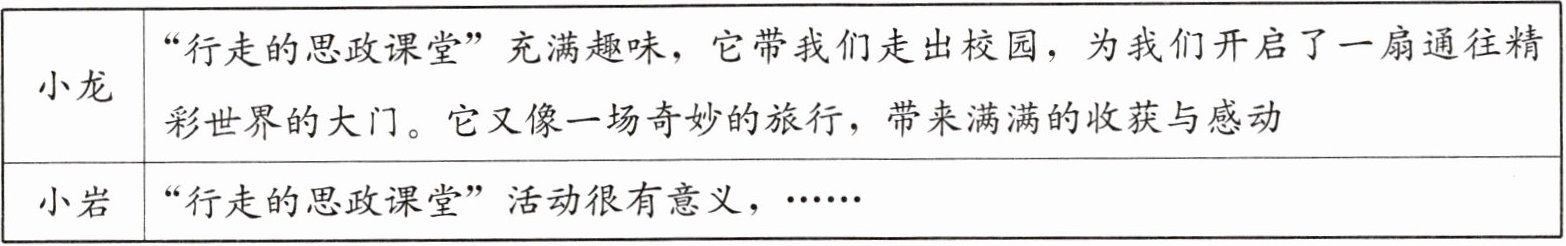(2) 结合上述材料及所学知识,续写小岩的活动体会。