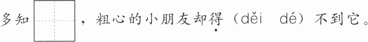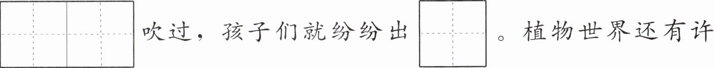 $\underset{\cdot}{}$(bèi bié)了降落伞,只要有风$\begin{array}{|c|c|}\hline qīng & qīng \\ \hline \end{array}\\ \hline $吹过,孩子们就纷纷出$\begin{array}{|c|}\hline fā \\ \hline \end{array}\\ \hline $。植物世界还有许多知$\begin{array}{|c|}\hline shí \\ \hline \end{array}\\ \hline $,粗心的小朋友却得