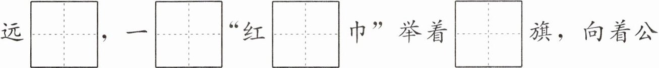 远$\begin{array}{|c|c|c|c|} \hline & & & \\ \hline \end{array}$\begin{array}{|c|c|c|c|} \hline & & & \\ \hline $chù,一$\begin{array}{|c|c|c|c|} \hline & & & \\ \hline \end{array}$\begin{array}{|c|c|c|c|} \hline & & & \\ \hline $qún“红$\begin{array}{|c|c|c|c|} \hline & & & \\ \hline \end{array}$\begin{array}{|c|c|c|c|} \hline & & & \\ \hline $lǐng巾”举着$\begin{array}{|c|c|c|c|} \hline & & & \\ \hline \end{array}$\begin{array}{|c|c|c|c|} \hline & & & \\ \hline $duì旗,向着公$\begin{array}{|c|c|c|c|} \hline & & & \\ \hline \end{array}$\begin{array}{|c|c|c|c|} \hline & & & \\ \hline $yuán里的一$\begin{array}{|c|c|c|c|} \hline & & & \\ \hline \end{array}$\begin{array}{|c|c|c|c|} \hline & & & \\ \hline $zuò纪念碑走去。