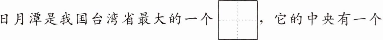 日月潭是我国台湾省最大的一个$\begin{array}{|c|}\hline\mathrm{h}ú\\\hline\end{array}\\\hline $,它的中央有一个小$\begin{array}{|c|}\hline\mathrm{d}ǎ\mathrm{o}\\\hline\end{array}\\\hline $,周围有许多名$\begin{array}{|c|}\hline\mathrm{sh}è\mathrm{n}\mathrm{g}\\\hline\end{array}\\\hline $古迹,吸引着中$\begin{array}{|c|}\hline\mathrm{w}à\mathrm{i}\\\hline\end{array}\\\hline $游客。