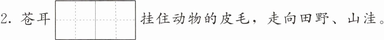 2. 苍耳 $\begin{array}{|c|c|} \hline qīng & qīng \\ \hline \end{array}\\ \hline $ 挂住动物的皮毛,走向田野、山洼。