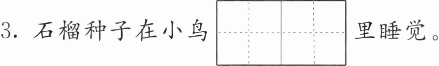 3. 石榴种子在小鸟 $\begin{array}{|c|c|} \hline dù & zi \\ \hline \end{array}\\ \hline $ 里睡觉。
