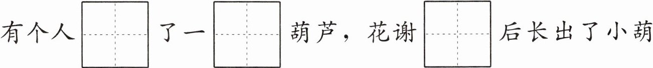 有个人$\underline{zhòng}了一\underline{kē}$葫芦,花谢$\underline{yǐ}$后长出了小葫芦。$\underline{lín jū}$叫他快治叶子上的虫,他觉得很$\underline{qí guài}。$