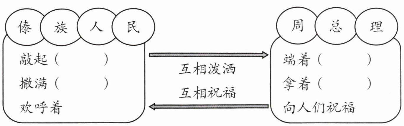 想象周总理与傣族人民互相泼水祝福的画面,完成写话。