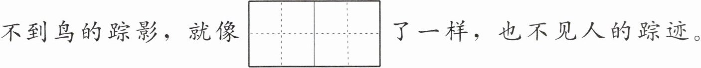 1. 雪下得很大,山上、路上都已经被大雪覆盖,山上看不到鸟的踪影,就像$\begin{array}{ll}\mathrm{m}\mathrm{i}è& \mathrm{j}\mathrm{u}é\\ \hline & \hline\end{array}\\ \hline & \hline $了一样,也不见人的踪迹。对应的诗句是:“ , 。”