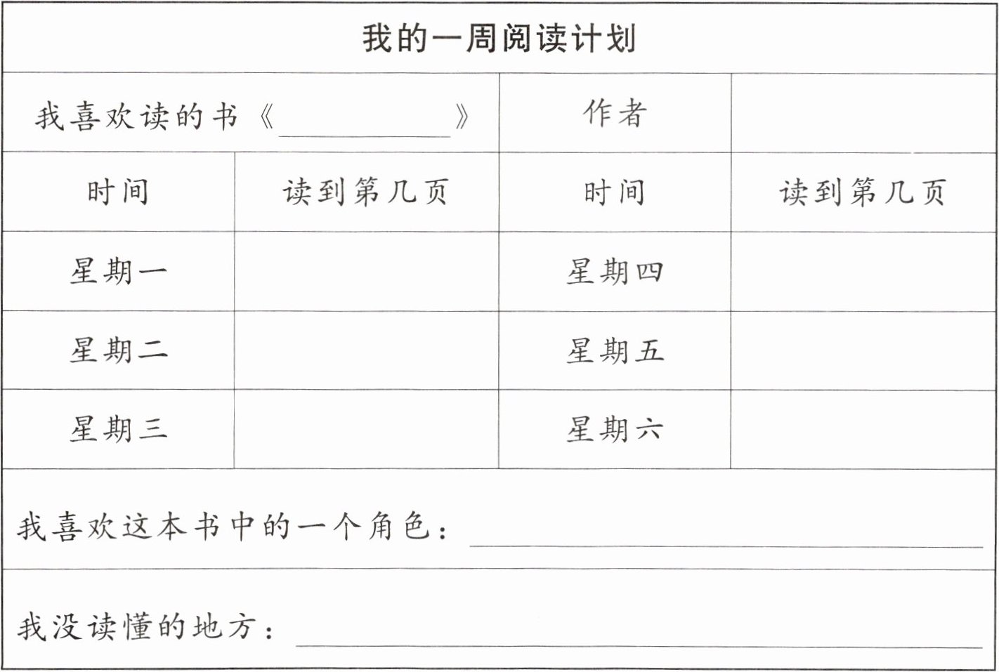 三、选一本你喜欢读的书,尝试做一个阅读计划。