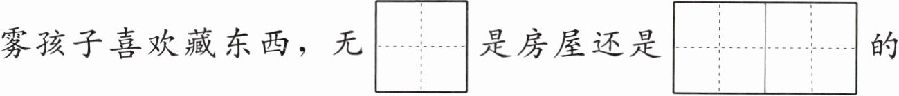雾孩子喜欢藏东西,无$\begin{array}{|c|} \hline\mathrm{lùn} \\ \hline \end{array}\\ \hline 是房屋还是\begin{array}{|c|c|} \hline\mathrm{sàn} & \mathrm{bù} \\ \hline \end{array}\\ \hline 的小\begin{array}{|c|} \hline\mathrm{māo} \\ \hline \end{array}\\ \hline $,无$\begin{array}{|c|} \hline\mathrm{lùn} \\ \hline \end{array}\\ \hline 是海水还是\begin{array}{|c|} \hline\mathrm{chuán} \\ \hline \end{array}\\ \hline $只,都被藏了起来。
