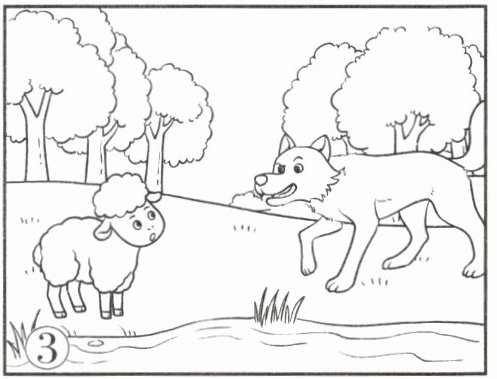 狼想吃了小羊,就故意找碴儿,说:“你把我喝的水弄脏了。”