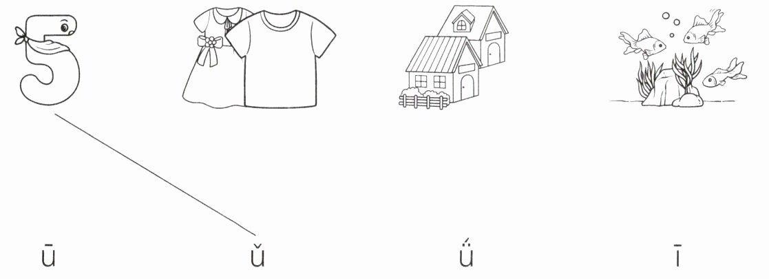 4. 金鱼的“鱼”拼音是“yú”,与“ú”相连。