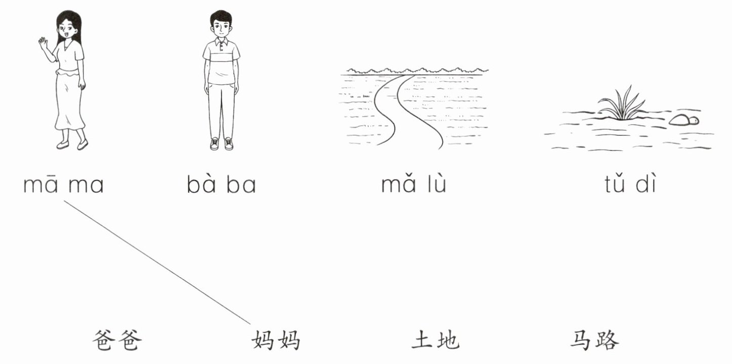 bà ba—爸爸 mǎ lù—马路 tǔ dì—土地