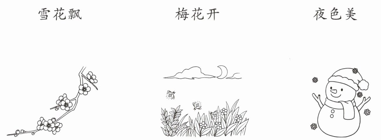 雪花飘连第三幅图;梅花开连第一幅图;夜色美连第二幅图。