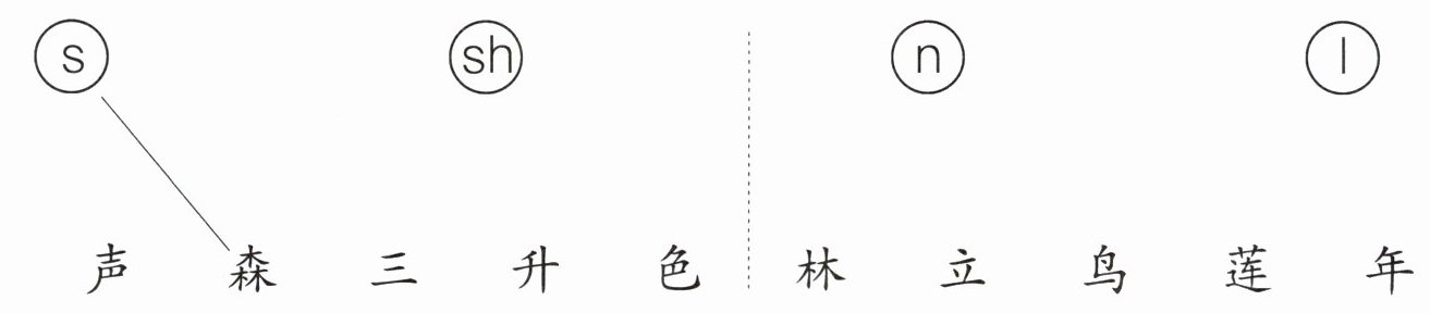 s—三、色 sh—声、升 n—鸟、年 l—林、立、莲