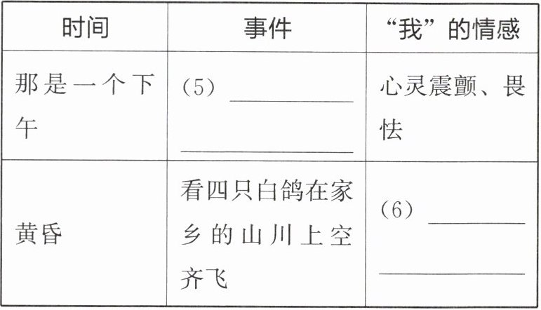 |那是一个下午|(5)______|心灵震颤、畏怯|