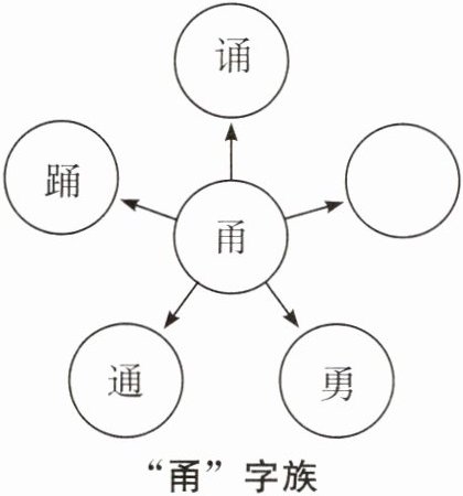 1. 文中加点字“诵”由“讠”和“甬”两部分构成,属于______(造字法)字,请你根据图示,在空缺处填入恰当的汉字。