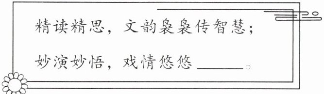 1.(1)茵 (2)yáng 2.(1)(朗诵时)满意、称心、舒服。(2)特别高明的本领,这里形容本领高超,无所不能。3.C(在“学习交流会”分享词的横线处,需要填入一个与“不断完善自己的学习方法”相契合的成语,“精益求精”符合文意) 4.A(“启才情”与“传智慧”在结构上相似,都是动宾结构,且意义上也契合,表示通过戏剧启发和展现才情) 5.第④句。修改意见:将“传承了中华文化”与“加深了我对课文的理解”调换顺序。