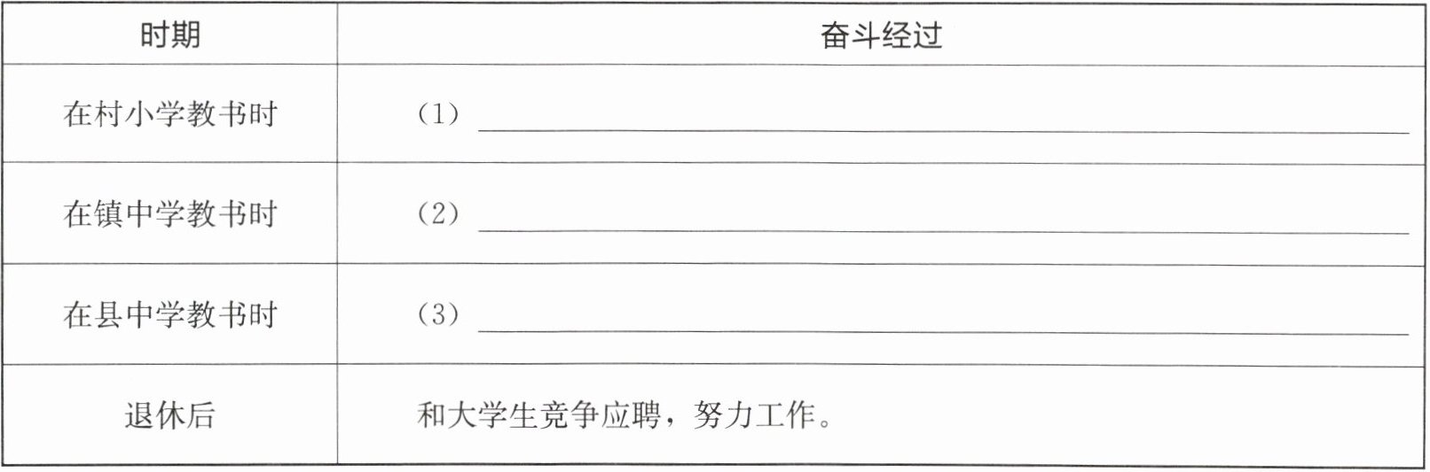 11. 阅读文章,简要概括父亲的奋斗史,完成下面的表格。